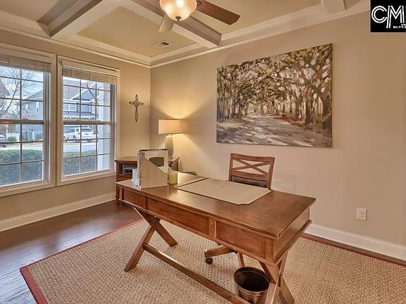 - Ceiling Fan(s), High Ceilings, Office, Ceiling Fan, Floors-Hardwood, Molding, Bookcase, Ceilings-Box