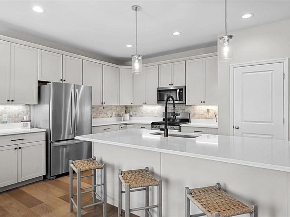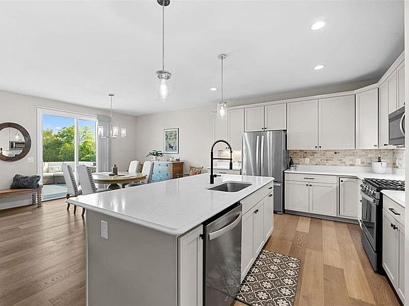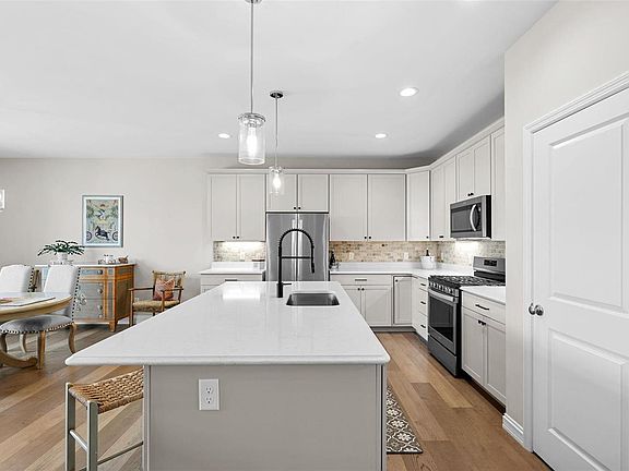 This gorgeous McKelvey Homes ranch built in 2021 features tall 9' ceilings, rich hardwood floors, & custom window blinds throughout the main level, including the great room w/gas fireplace. The beautiful kitchen has 42" shaker cabinets, quartz counters, tumbled stone backsplash, undercabinet lighting, breakfast bar island, & stainless steel appliances, including a 5-burner gas range & refrigerator, which stays. All bedrooms have walk-in closets, including the private primary suite w/separate vanities & seated tile shower in the attached bath. Finished lookout lower level rec room is ideal for entertaining, & has a full bath & private 4th bedroom visiting guests or teens will appreciate. 3-car garage & irrigated, level, 1/3-acre yard w/deck that would be perfect for a pool. Neighborhood pool, clubhouse, lakes, & trails. Easy access to I-70/370 & close to the best shopping, dining, & entertainment venues in St Charles. St Charles (West High) Schools. Such a wonderful home! See it today!