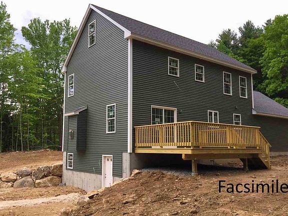 To be built new construction colonial to be built on just under 4 acres in a great commuter location. Set back from the road, this home will feature custom cabinets and granite counters in the kitchen, tile in the bathrooms, a first floor laundry room with half bath and hardwood throughout the open-concept first floor Three bedrooms upstairs include a master with walk-in closet and en-suite bathroom. Choice of Dover High School or Coe-Brown Northwood Academy. The house pictured is a reasonable facsimile of the house to be built.