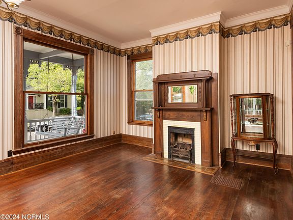 From the enclosed upstairs sunroom, enjoy views of downtown Wilmington's skyline, Cape Fear River, and Battleship North Carolina. The property also features a full basement and an attic, providing ample storage.