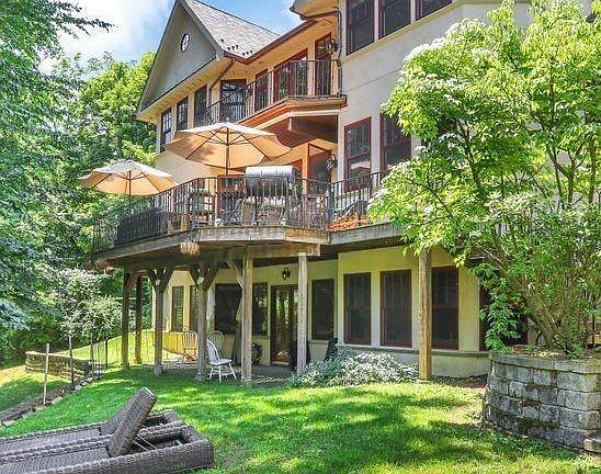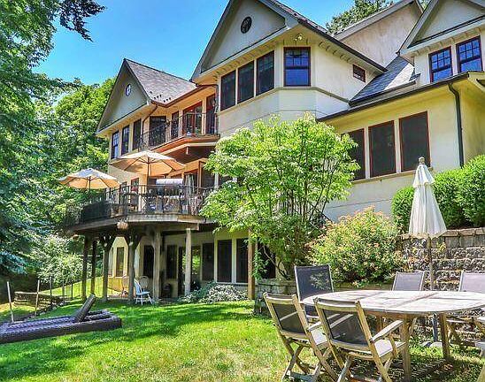 Stately Old-World Elegance on 4 levels of quality construction centrally located on rolling grounds adjoining beauty of 100+ acres of protected woodlands & park. Central hall colonial with elegantly proportioned rooms featuring coffered ceilings, quality crown moldings, travertine marble floors, & rich hardwoods of Brazilian Cherry, Mahogany & Am. Cherry & Oak. Chef's kitchen w/center island accesses deck overlooking nature for al-fresco dining & BBQ's. Formal dining room & butler's pantry adjoin a stately family room with stone focal fireplace. Grand Primary Suite has soaring ceilings, walk-in closet & European marble bath. 3 spacious ensuite bedrooms complete second floor. Third level has two bedrooms and bath for au-pair or office. Walk-out lower level with third FPL, media center.