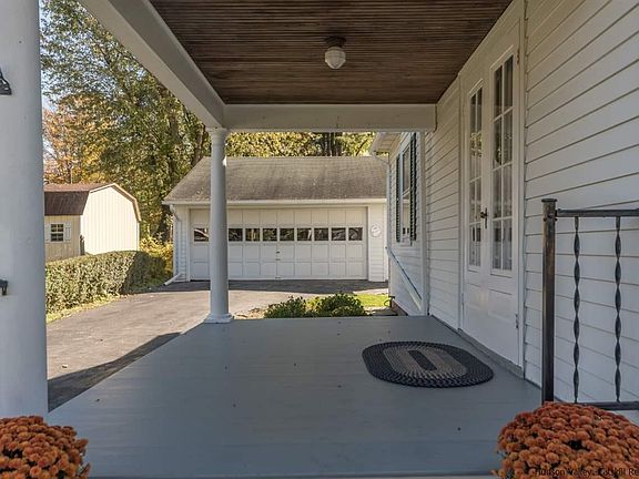 This Old Hurley Charmer set on a beautifully landscaped lot is really a one of a kind with an arched front door and old fashioned details making it a stand out on this quiet road walk-able to all that Old Hurley has to offer. A comfortable sized living room with a wood burning fireplace makes this home so cozy. There are French doors leading to an open side porch with a bead board ceiling perfect for those warm summer nights with neighbors walking by. It's the way life used to be. There are also 3 bedrooms, 1.5 baths and laundry all on the 1st level for easy living. This home has hardwood floors and some of them are newly refinished. The second story has a finished room and attic storage. There are many possibilities there. The basement includes a playroom/family room and workshop area along with additional storage. The over sized 2 car garage is such a bonus and something you don't ordinarily see. The yard is partially fenced for privacy and just a great place to sit and relax. You can tell the gardens here have been are a labor of love. Old Hurley is so unique with it's summertime parade down the Main street, festivals and even a ghost walk around Halloween past the Old Stone Homes. Visit the Hurley Heritage Museum and don't forget the rail trail within walking distance. The best part is that you are still minutes to everything else like shopping, restaurants and the Historic Uptown Kingston Stockade area. Don't wait on this one !! Just 2 hours out of NYC. Exit 19 on the NYS Thruway is Less than 10 minutes from this home.