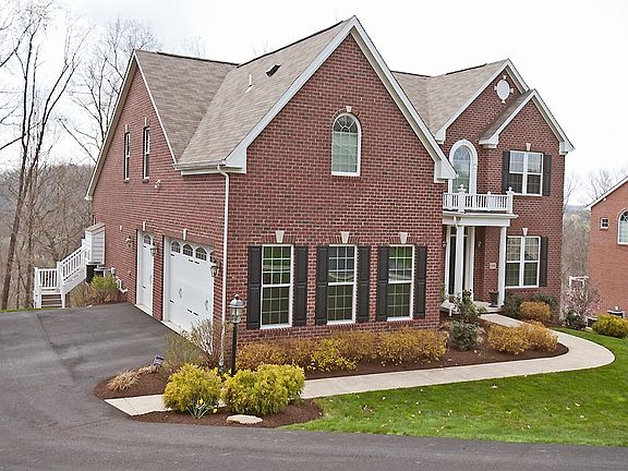 It will feel like vacation every day in this pristine home in the Overlook in Peters Township. Perched atop a wooded valley with mature trees providing a breathtaking backdrop from the spacious covered deck and patio, this home is complemented by professional landscaping and lush lawns. A level walkway leads to an elegant entry and grand foyer. A gracious wooden staircase and substantial chair rail and crown moldings make for a stunning first impression. Gleaming hardwood floors grace most of the first floor. Classic elegance describes the kitchen with its' oversized island, stainless appliances, including double ovens and a top of the line ultra-quiet dishwasher. Rich cherry wood cabinetry is complimented by polished granite countertops including a bar height counter top separating the kitchen and the bright and airy morning room. This versatile eating area is bathed in natural light with a full wall of windows and a door leading to the 12' by 24' Trex deck. A stairway to a paver patio below allows one to enjoy the lovely rear grounds. Adjacent to the kitchen is a spacious family room with an impressive 18 foot ceiling and brick surround gas fireplace. Another wall of windows showcases the rolling south hills and its' stunning vistas. A convenient back staircase offers another way to the upper level of the home. Rounding out the first floor is a home office/den with French doors and a bay window overlooking the front lawn, and a huge laundry room just off of the kitchen for maximum convenience. Cabinetry, a not-so-average utility sink, and plenty of floor space for drying racks and baskets are sure to make laundry less of a chore. The understated elegance continues from the gracious foyer to the second level, complete with more chair rail and crown molding. Double doors lead to a sumptuous master suite which has ample space for impressive furnishings. A tray ceiling and columns add architectural detail to the suite, which also includes a cozy sitting area. The adjoining master bath boasts a glass enclosed shower, separate soaking tub, dual vanities with granite tops, and dual walk- in closets. The other generously sized bedrooms include one with a private bathroom with tub, and two more separated by a Jack and Jill bathroom with dual vanities and a bathtub. A fully finished daylight lower level offers more living space and numerous options. There is ample space for an additional home office, a game room or media room, a fitness area, and more. There is a full bathroom making this level the perfect place for guests. A utility room houses the high efficiency two-zone furnace, high efficiency water heater, and humidifier, and there is plenty of additional storage space. A whole house security system with two control pads and an interior audio sound system are more notable amenities. The three car garage has a tiled floor and includes automatic openers with a keypad. An enlarged driveway offers plenty of off street parking and room to turn around. Gutter leaf filters and underground downspouts and an automated sprinkler system for the lawn and landscape are more well thought out details. This home is located in one of Pittsburgh's finest South Hills communities, convenient to shopping, dining, recreation, and major roads for easy commuting to downtown and the airport. For more information or a private tour, please contact Mary Eve Kearns at 412-889-7244.