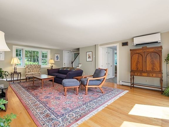 Welcome to this charming, expanded four bedrooms, 2 bathroom, cape with lots of natural light and beautiful backyard! This home boasts large rooms and an architect designed addition featuring a first-floor primary bedroom, full bathroom and second bedroom or den. Enjoy the sunlight from the windows and french door in the spacious living room with fireplace or exit to the large deck and private backyard to take in the outdoors. Cook’s kitchen with granite counters, island seating and easy access to the mudroom. Formal dining room. Delightful primary bedroom addition with vaulted ceiling, pretty views, and loft space for exercise or office. 2nd fl offers two huge bedrooms, hardwood floors and white tiled full bath. New garage doors, hot water heater, & newer ductless A/C system. Solar panels, 2-car garage. Basement storage and about 475 sf of potential finished space. Lovely serene location near trails, a playground, a grocery, Claypit Elem, the train! Top-rated schools! SEE TODAY!