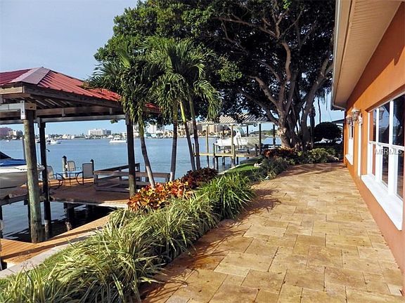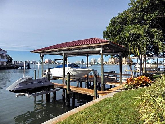 Gorgeous waterfront home with open water views on Island Estates is now available for the most discerning home buyer. Completely remodeled with many special features and attention to details. Pavered circular driveway and beautiful landscaping give a rich and elegant first impression. Walk in the front door and the water beckons you through the large windows (hurricane rated) across the family room. Open floor plan gives a spacious feeling to the split bedroom plan. Central to the floor plan is the kitchen with new appliances, closet pantry, breakfast bar, wine cooler and large pass thru into family room dining area with wet bar. Soaring ceilings make this family room inviting for entertaining along with the view and access to the back patio paved with beautiful travertine. Step down to the covered boat dock with lift for your boat and jet ski and large open dock for relaxing while watching the dolphins play and the evenings' sunset. Inside, the large Master gives privacy, a walk in closet and an incredible walk in shower with room for two. Double doors open onto the family room for easy access to the back. Second bedroom is large and has built in desk and computer station with a walk through bath which can be made into a suite for your guests. Laundry room is inside and leads to oversized garage with new hurricane rated garage door. Located on a cul de sac with no thru traffic and close to all services. Security system, new roof, new windows, flooring and so much more. *VIRTUAL TOUR LINK
