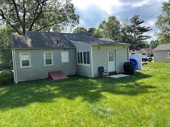 Welcome to this cozy, well-maintained ranch-style home! Enjoy a spacious living room featuring hardwood floors, a wood-burning fireplace, and a beautiful bay window. The adjacent dining room includes French doors that open to a large, private backyard—perfect for relaxing or entertaining. The updated kitchen offers ample cabinet and counter space. The full bathroom was completely remodeled in 2018. The generously sized primary bedroom and second bedroom both feature hardwood floors. All ceilings were redone in 2018 for a fresh, modern feel. The partially finished basement provides versatile space currently used as a home office and salon station. Additional updates include maintenance-free vinyl siding, replacement windows, and a roof that was stripped and re-shingled in 2017. A new driveway was installed in 2022. The chimney was rebuilt at the top portion and re-flashed in 2025.This home also includes 200 amp electrical service and a generator hookup for added peace of mind.