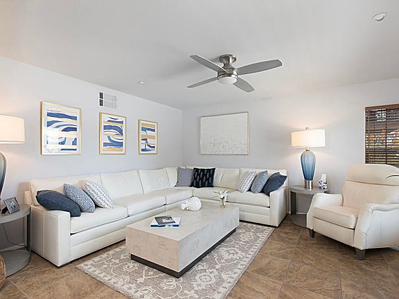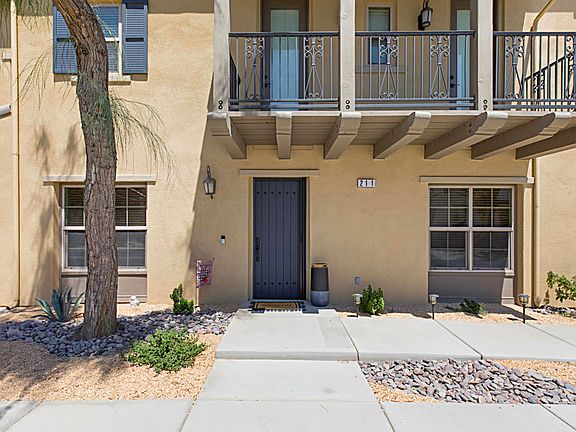 Discover your dream home in the highly sought-after gated community of Spanish Walk! This stunning single-story 2 bedroom, 2 bath condo is a rare gem, conveniently located next to one of the communities inviting pools, perfect for enjoying the resort-style amenities. Step inside and be greeted by a spacious layout enhanced by unique arched doorways and elegant 18x18 Custom tile flooring. Cook and entertain in style w/ granite countertops accented w/ beautiful custom backsplash, stainless steel appliances, and beautiful oak cabinetry w/ custom hardware. Enjoy the custom paint and ceiling fans throughout, custom dark wood blinds throughout, creating a warm and inviting atmosphere. Both bathrooms are beautifully updated, adding a touch of luxury to your daily routine. The garage boasts sleek epoxy floors, providing a contemporary and clean look. The low HOA fees provide access to a clubhouse, fitness center, playground, billard room, dog park, resort style main pool and multiple community pools. Conveniently located near the new Acrisure Arena, golfing, casinos and much more.