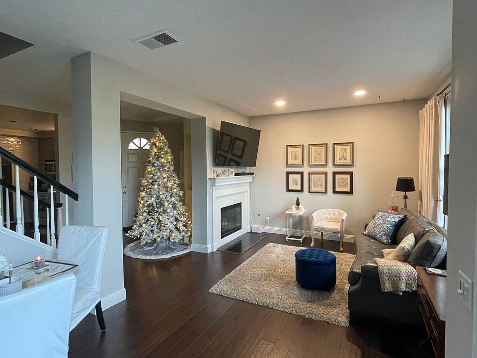 Turnkey and ready to go! This upgraded townhouse is picture perfect. This home features a large kitchen with custom cabinetry, quartz countertops and upgraded appliances and refrigerator, including a dual temperature beverage refrigerator. Walnut wood flooring extends throughout the lower level, kitchen and living areas. Your comfort is assured with newly installed dual pane energy efficient windows throughout the home as well as new air conditioning system. Living areas include cozy fireplace, dining area leading out to private patio, and gracious entry. In addition to guest bath on lower level, upper level features two bedroom suites with their own private baths. Large walk-in closet in master bedroom as well as oversized, soaking tub. Bonus loft area can serve as office or flex space. 1 car attached garage and additional dedicated parking space adjacent to unit. Green spaces abound in this attractive community with a greenbelt directly behind the home and entry door opening into a quiet courtyard. Amenities include community pool, hot tub, barbecue area, children's playground. Location is close to schools, parks, toll road and shopping and is situated in safe and beautiful Rancho Santa Margarita. 12 month lease, all adult tenants must execute separate application and pay application fee, including credit check and background rental history. Renters insurance policy required No smoking or vaping. NO utilities included excepting sewer and trash. Tenant will provide proof of utility accounts before receiving keys. Late fees apply on late paid rent.