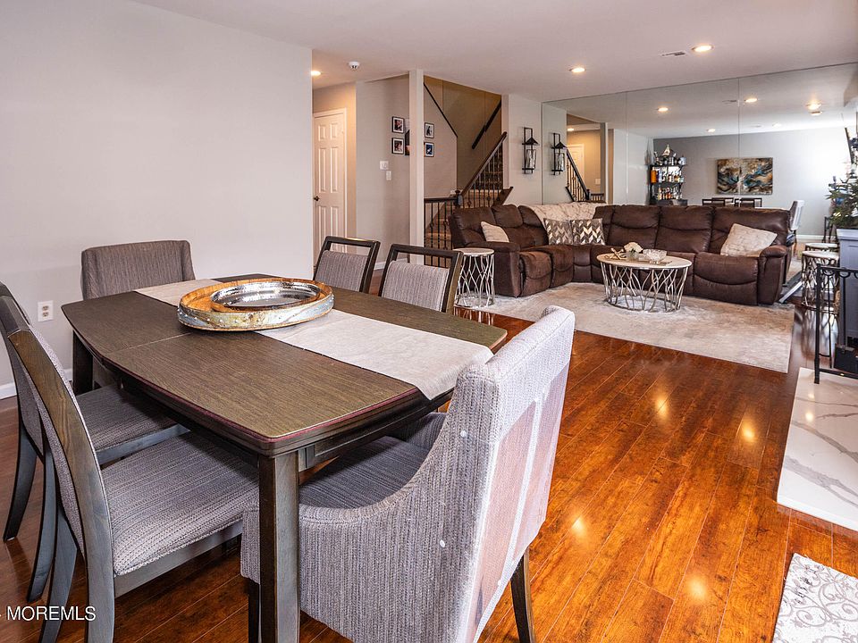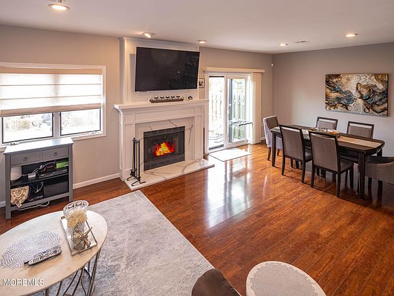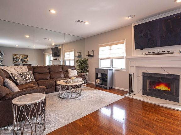 The Orchards, Marlboro NJ! Gorgeous 3 bedroom, 2 1/2 bath end unit in the coveted Orchards at Marlboro development. No expense has been spared! Featuring direct entry 1-car garage and renovated eat-in kitchen with granite countertops and stainless steel appliances. Living room/dining room combo adorned with a luxurious, newly renovated fireplace and mantle leading out to custom paver patio in the backyard. Powder & laundry on main floor. All bathrooms are brand new with custom quartz vanities. Primary bedroom has 2 walk-in closets with ample storage and bathroom with a double vanity as well as an over-sized walk-in shower. Engineered dark espresso hardwood floors can be found throughout the top floor. Updated heating/AC systems hot water heater as well as roof. New front, patio, and garage doors with recessed lighting throughout, plus more. Close to pool and recreation facilities with ample parking nearby.