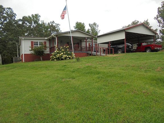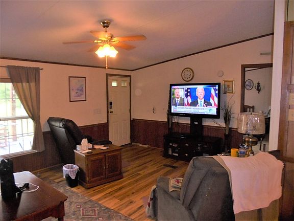 Spacious 3 bedroom home with 2 full baths, Living Room plus Large Den with access to basement storage area, fireplace in Den is not hooked up to the gas line. Nice kitchen area has natural gas range, dishwasher, built in oven with dinette area. Covered front and rear porches, 38 +/- Acres with good road frontage, abundance of wildlife, year round water, detached 24x30 shop/garage with electric, storm shelter, well pump has been replaced. Some of the acreage is in a flood zone.