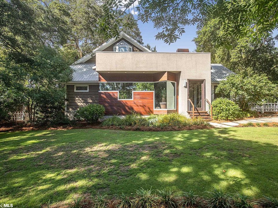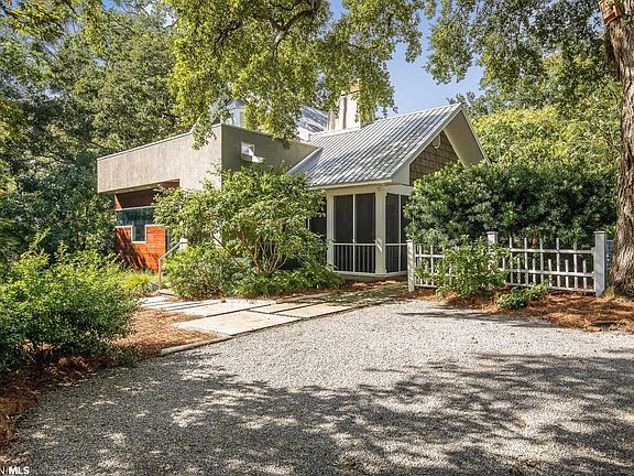 Custom home in Fairhope's Fruit & Nut area blends old world charm with a touch of modern luxury. Sold with adjacent double lot behind home (PPIN 18245) with easement access. Come see this amazing house for yourself. Private lot secludes a beautiful home renovated throughout with Coleman Mills as Architect. The screened front porch takes you into open area centered around the gourmet kitchen. Entertain around the large Ceasar stone quartz island with sitting area and breakfast area highlighted with lots of natural light. High-end appliances throughout; Subzero fridge, Wolf gas cooktop and Wolf double oven. Primary bedroom features dual walk-in closets, dual vanities, oversized shower, and air jet tub. Just off the kitchen area is a formal dining room which could be a study, and a cozy den with gas fireplace and stunning piano glass window. Upstairs has two bedrooms with full ensuite baths, a second den/TV room, a bonus room with a 4th full bath, as well as an additional study or storage area. | Metal Roof approx 5 years old | 3 HVACs | Tankless Water Heater | Irrigation on Well | Greenhouse