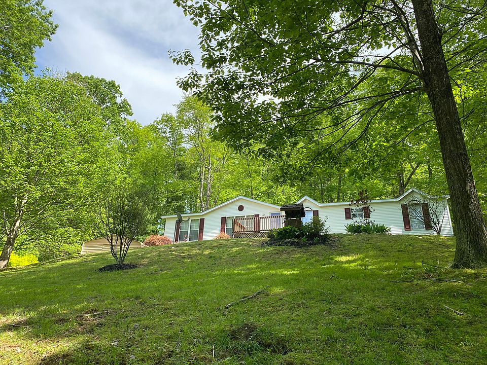 PERMANENT SPLIT-FACE CINDERBLOCK FOUNDATION-and very roomy with open floor plan. This home is tucked away in a quiet serene wooded setting and is only 5 min. from town of Floyd!. Appliances convey. FauxRock fireplace in the Den burns wood . Adds ambiance and heat, Get-A-Way country place in the mountains and close to all the many Music Venues happening here! 20X30 OUTBUILDING. LARGE GRAVELED PARKING private road.