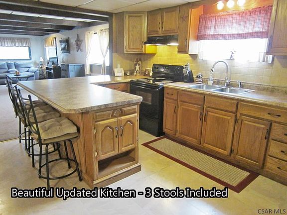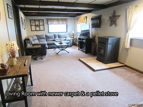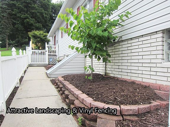 You'll love the great updates and the fabulous fenced yard at this 3 Bedroom, 2 Bath vinyl/brick Ranch. Carpeted Living Room w/pellet stove. Updated Kitchen w/great counter space & breakfast bar. Master Bedroom has a walk-in closet, electric fireplace, & laminate flooring. Updated Bath w/laminate flooring & attic access. Enclosed rear Sunroom plus storage area. Enjoy the fenced yard w/maintenance free deck, tiered landscaping, pond, paver wall, and 2 sheds. Basement has a nice Laundry & Bath + large room ready to be finished into a Fam. Room!