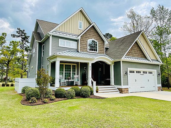 *Phone # Updated 252-216-9933* Come fall in love with this meticulously maintained custom Craftsman style home located in the heart of Hampstead with 4 bedrooms, 3 1/2 baths, and an oversized bonus room. This is the perfect home for indoor and outdoor entertaining. Beautiful matured landscaping with lighting adds just the right curb appeal to the home. Upon entering, you are greeted by a two story foyer which creates a dramatic entry with its sweeping curved staircase. Two grand colums mark the entrance to the formal dining area. The butler’s pantry leads to the large gourmet kitchen and casual dining area along with the spacious family room. As you enter the kitchen, triple windows overlook the delightful screened porch with a view of the Olde Point Golf Course located on the 16th hole. The open floor plan with 2 x 6 exterior walls boasts coffered ceilings, beautiful light oak hardwood floors throughout main living space, extensive crown molding, gorgeous granite, and a custom fireplace with gas logs and built-in shelves. The kitchen shines with stainless steel appliances, a gas range stove with stainless hood, gorgeous custom cabinets and molding with soft-close drawers and slide out organizers, along with stunning granite countertops complete with a stone backsplash with LED lighting throughout the home to create an elegant feel. The master suite features beautiful trey ceilings, sitting area, his and her walk-in closets, and a tiled luxurious bathroom with a double sink vanity, jetted soaking tub, and separate walk-in granite shower. A curved balcony loft overlooks the two-story great room with coffered ceilings. Upstairs you will find one bedroom with an attached full bath, while the other two bedrooms share a Jack and Jill full bath. The large bonus room is complete with vaulted ceilings, paneled walls, and a kitchen with cabinets, sink, and refrigerator. This room offers plenty of room to utilize as you please –perhaps a home theater, in-law suite, art studio, office, or exercise space - the choice is yours. There is an oversized two-car garage with an entrance into a tiled mud room with custom built-ins. Running alongside the mudroom is a spacious laundry room filled with custom cabinets and a utility sink. Enjoy the peaceful views of the golf course from the back deck or screened in porch while having your morning coffee. Entertain at night under the gorgeous pergola with lights and outdoor kitchen complete with granite countertops. Enjoy the custom-built stone fire pit with additional outdoor sitting. And don't forget the outdoor shed for additional storage. Located in the highly desirable Topsail School District. Easy commute to Topsail Beaches, downtown Historic Wilmington, and minutes from Harbour Village Marina. Boat ramp, pool, golf, and tennis memberships can be purchased separately. Come and see your dream home today!