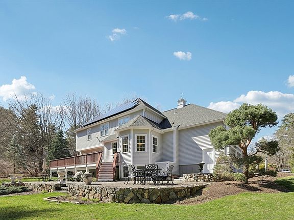 Prestigious Setting and Beautifully located on a scenic road. Two-story foyer, elegant living room and dining room with tray ceiling and hardwood floors. A Gourmet Kitchen with breakfast area and family room all leading to the stunning deck, patio, and gardens. The main bedroom suite has been expanded using the 4th bedroom as a sitting room and there is an additional study with skylights, full tile bath with soaking tub, separate vanities, and shower. 2 walk-in closets with additional closets for linen and storage. 2 additional bedrooms and tiled full bath. The Wonderful Large Lower level is a walk-out including a Game Room with a bar (28x14,11x23 and 14x16), a full bath and a guest bedroom. Solar is owned. Moments away from the South Acton Train, The Rail Trail, Assabet River, Emerald Necklace of trails, parks, shops, and commuter routes. Stow is known for Conservation Trails, Golf, Apples, Small Farm and Nashoba & Minuteman Schools. Visit and Relax, Enjoy Life!