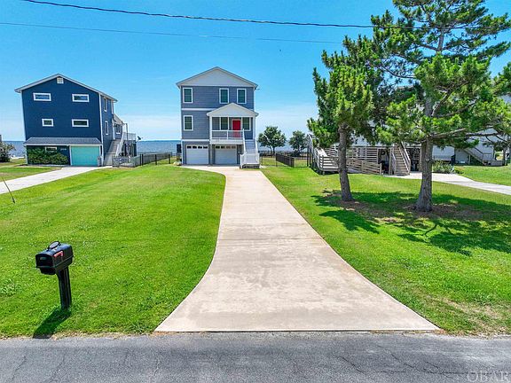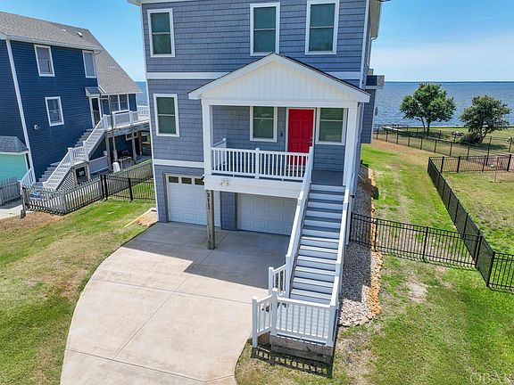 Stunning Soundfront Home Built in 2018  Welcome to your dream home! Built in 2018 by renowned builder DeBoy, this exquisite property offers luxurious and spacious living with breathtaking views of the sound. Situated on a generous 10,000 sq ft lot, this home features 2,222 sq ft of beautifully designed living space with high-quality construction, including 2x6 exterior wall construction and a sturdy 2x8 rear exterior wall. The main level boasts an open-concept design with walls of windows that fill the home with natural light and endless views, a 12x26 screened porch with high-wind screening, and a portable grill/kitchen perfect for outdoor dining and entertaining. The gourmet kitchen is a chef’s delight with a gas cooktop, wall oven, warming drawer, pot filler, center island with sink and dishwasher, stainless steel appliances, ample cabinet and drawer storage, and granite countertops. The main entry door is on this level and opens to a covered porch. This level also offers a half bath, and a guest en-suite.  The top level offers an expansive main en-suite featuring a wall of windows that make you feel like you are on a ship, an electric fireplace adding ambiance to both the suite and the bathroom, a large soaking tub overlooking the sound, a double vanity, a gorgeous shower with glass doors, a walk-in closet, and a water closet. Down the hall, you’ll find another guest en-suite and a laundry room equipped with a laundry sink, washer, and dryer. The enclosed and finished ground floor provides ample storage, three garage doors for easy access to the street and water, and a convenient dry entry to the house.  Outside, the beautifully landscaped yard includes a sprinkler system on a separate well, an outdoor shower, a fish cleaning table, and a patio with a portable fire pit. This custom-built home, designed for year-round primary living, easily converts to a short-term rental. Additional features include a tankless water heater, easy water shutoffs, custom blinds, a septic system for eight, surround sound in the main living area, main en-suite, patio, and screened porch, and security cameras (Blink by Amazon). Located in the gated deep-water community of Colington Harbour, this home offers access to a marina, boat ramp, soundside beach, playground area, and an outdoor pool by separate membership. Spend your free time enjoying life on the water, not cleaning and maintaining the exterior of your home which features vinyl siding, pvc trim, composite decking and white vinyl handrails. This home is truly a must-see.  Home is sold partially furnished....a few staging items (bedspreads, pillows, towels etc do not convey).