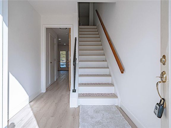 The first floor welcomes you with a large foyer and hallway leading to the family room, laundry area, and utilities. A convenient under-stairs closet is plumbed for a future powder room, offering additional potential.