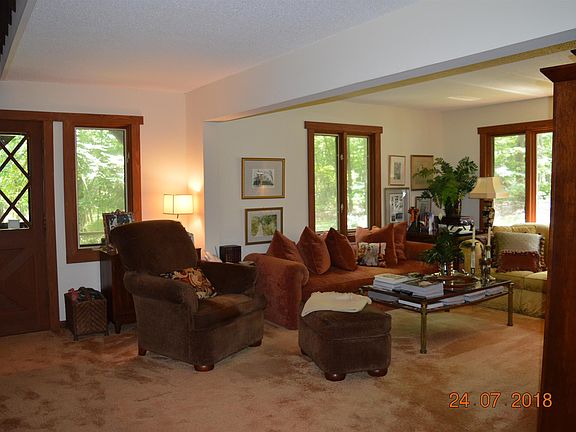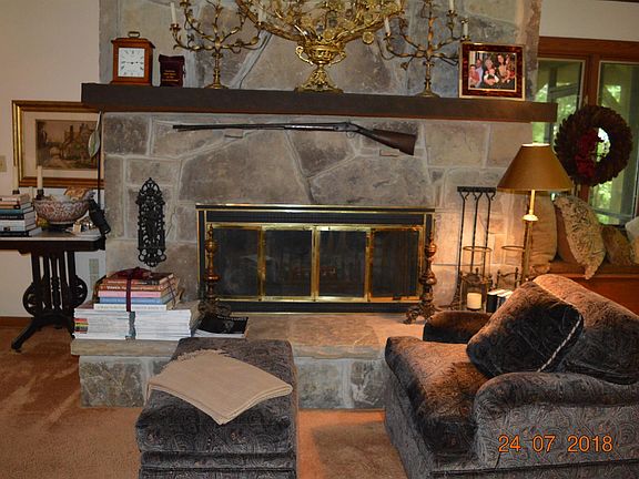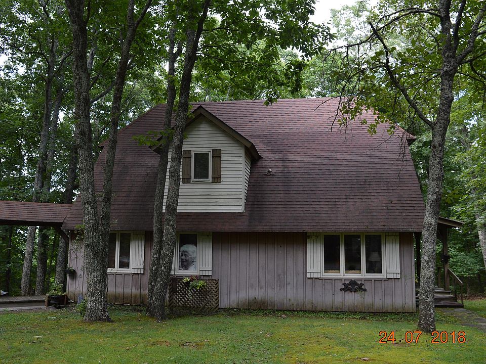 BLUFF home situated on 5+ wooded acres! Relax and enjoy the spacious (12X23) screened deck facing the Bluff or come inside to enjoy the floor to ceiling stone/ wood burning fire place, Beautiful cathedral ceilings, covered breeze way to the garage.