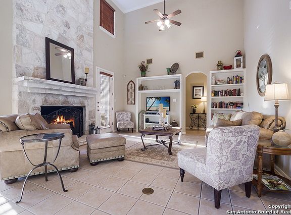 You've found the Hill Country home of your dreams! Sitting on 5 acres, this charming 2 story features an open floor plan, high ceilings, ceramic tile floors in main living areas, cozy stone fireplace, wrap around kitchen perfect for cooking with built in SS appliances, lots of counter space & an island! 4 spacious bedrooms, 2.5 baths, study, game room/flex room. Stunning sunset views from the covered deck & pool! Horse stalls, round pen, shed, and shop also sit on the property. Schedule a showing today!