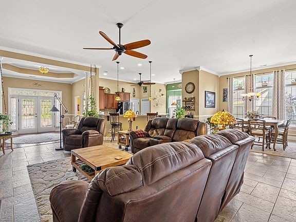 • Features: Breakfast Bar, Breakfast Area, Ceiling Fan(s), Kitchen Island, Pantry, Solid Surface Counters