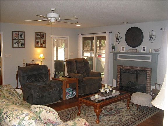 COUNTRY LIVING ON 3.74 ACRES+-! HOME SITS OFF THE ROAD NESTLED AMONG TREES. WONDERFUL 21'3X19'9+- DEN W/HARDWOOD FLOORS, FIREPLACE W/GAS LOGS, RECESSED LIGHTING, AND BOOKSHELVES FEATURING STORAGE CABINETS & DESK AREA. SPACIOUS MASTER W/WALK IN CLOSET. TONS OF STORAGE SPACE THROUGHOUT HOME. LARGE LAUNDRY/PANTRY. ROCKING CHAIR FRONT PORCH & SCREENED REAR PORCH. 2 CAR ATTACHED GARAGE. 40X40+- DOG PEN. HVAC ONE YEAR OLD+-. NEW ROOF 2013. NEW HOT WATER HEATER NOVEMBER 2018. ONLY 10 MINUTES+- TO GROCERY, PHARMACY, ACE HARDWARE, DOLLAR STORE, & SADLERS CREEK STATE PARK ON LAKE HARTWELL. 15 MINUTES+- TO I-85. MUST SEE!