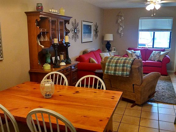 Age, SF, and dimensions approximate. Very nice updated unit. Newer cabinets and granite counters. Vanities done in restrooms. Tiled floors downstairs. Unit located in quiet area of resort. Complex has 11 pools to include clubhouse with pool on the beach. Gated community and pet friendly.
