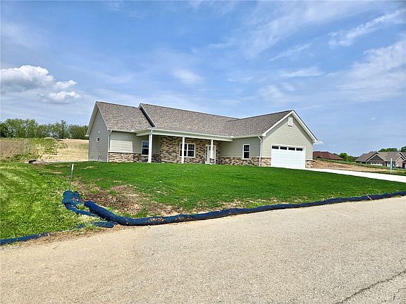 Welcome to Your Dream Home in Diamond Estates! Experience modern luxury and peaceful country living in this stunning new construction home. This open-concept design features a custom kitchen with granite countertops, high-end finishes, and soft-close cabinetry, perfect for daily living and entertaining. Expansive Anderson windows fill the living room with natural light and breathtaking countryside views. Your private master suite offers a luxurious en-suite bath, his and her quartz-topped vanities, and a walk-in closet. Plush carpeting adds warmth throughout. Relax or entertain on the large covered patio. Enjoy the convenience of first-floor laundry, an oversized two-car garage, and easy access to highways, shopping, and dining. Outdoor enthusiasts will love the scenic nature trails leading to Dunlap Lake—your perfect escape into nature. Elegance, comfort, and natural beauty await in Diamond Estates.