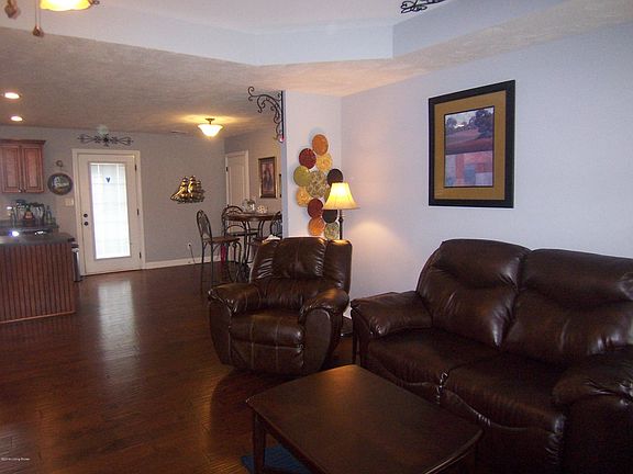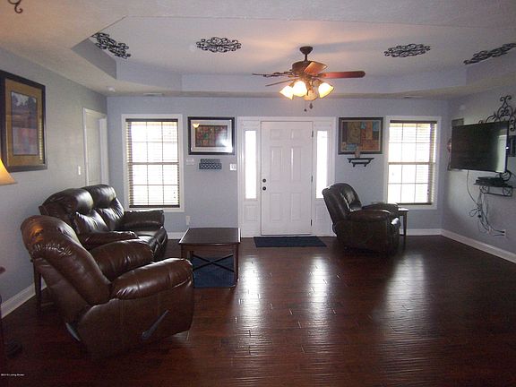 Lovely three bedroom two bath brick ranch with one car attached garage situated on .28 acre lot in Hunters Ridge. Home greets you with stamped concrete walkway porch, perfect for morning coffee or afternoon tea. Enter into the highly desirable open concept Livingroom/Kitchen with beautiful hardwood floors & decorative trey ceiling. Kitchen features plenty of lovely cabinetry and comes equipped with a full compliment of appliances including range/oven, refrigerator, dishwasher and microwave. Nice center island/breakfast bar is an added bonus. Home also offers a split floorplan which allows for the utmost in privacy. Nice carpeted master suite with decorative trey ceiling and walk in closet along with tiled Master Bath with walk in shower are housed on one side of the home. Venture to
