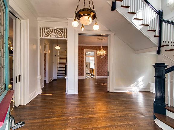 Own a piece of History! Period details include 2 sets of pocket doors,12 ft ceilings,beveled glass entry,period light fixtures,fireplaces,doors and hardware,moldings,etc.Grand Entry,double parlor,Dining w/bay window,Library/Br on main level,large Kit ready for updating,Upper level w/4BR's /2 Baths-plenty of options to create a Master Suite!