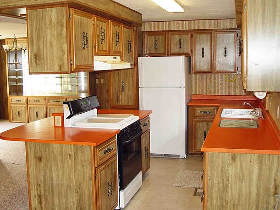 Well maintained home with many trees including apple and cherry trees; fruits including grape and raspberries. 2 decks. 2 sheds. Fenced in garden space. Detached garage with carports attached. All new Anderson windows installed 2007 including two large bay windows. Large lighted built-in display case. This house is a manufactured home on a permanent block foundation without a basement.