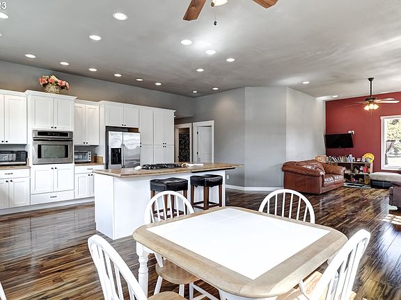Darling one-level home is larger than it looks & features updates through-out. 3 bdrms + office/den (can work as 4th bdrm). Open-concept floor plan & spacious rooms. High ceilings & lots of windows provide natural light. Kitchen has soft close cabinetry, farm sink, eating island & ss appls. Primary bdrm has w-in closet & private bthrm w/dual sinks. Great location near shopping, restaurants, wineries, vineyards & Champoeg State Park. A/C 2022. 2015 updates: roof, gas wtr htr, Hardiplank siding, ext paint, electrical, plumbing & vinyl windows. Gas furnace 2013.