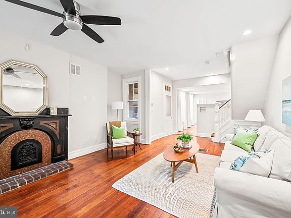 Looking for more space? This classic, wide 3 story brick front home in a premier location has it, plus all the modern conveniences you need combined with the historic charm that you love! City life is easy here with a SECURE, GATED PARKING PAD plus a private and charming rear courtyard. The double door entry foyer welcomes you into a spacious living room with historic details including a decorative fireplace with a beautiful mantel, incredible ceiling height, stained glass, an original staircase, and wood floors. The main level of this smartly designed home includes a convenient first floor powder room, a large dining room, a bright and updated kitchen with crisp, white cabinetry, stainless steel appliances, upgraded countertops, a breakfast bar, plus a breakfast room/family room that is open to the kitchen at the rear of the home. Expand your living space outdoors onto the charming and private rear patio. It’s a great set up to entertain or to have quiet al fresco dinners under the shade of the trellis. The primary suite is on the second level of this home which is currently set up as a private retreat with a light filled and large bedroom, a huge walk in closet/dressing room, a gorgeous spa-like bathroom that includes a custom walk-in shower and free-standing soaking tub. The spacious laundry room with shelving completes the 2nd level of this home. Two more bedrooms and a second full bathroom are found on the upper level and the basement is where the utilities are housed along with plenty of storage space. This 16 ft wide home sits on a charming tree-lined street with cafe lights to light the sidewalks at night, is close to Johns Hopkins, the waterfront promenade, great local shops, dining, and nightlife in Butchers Hill and Fells Point, and is on a premier block just steps to the green spaces of Patterson Park, one of the best parks in Charm City. Come check out this beautiful, unique historic home & fall in love! *This home is currently set up with 3 bedrooms. The walk-in closet/dressing room on the 2nd floor could easily be converted back into a 4th bedroom by the next homeowner.*Property may qualify for the Johns Hopkins Live Near Your Work $5,000 Grant Program.*