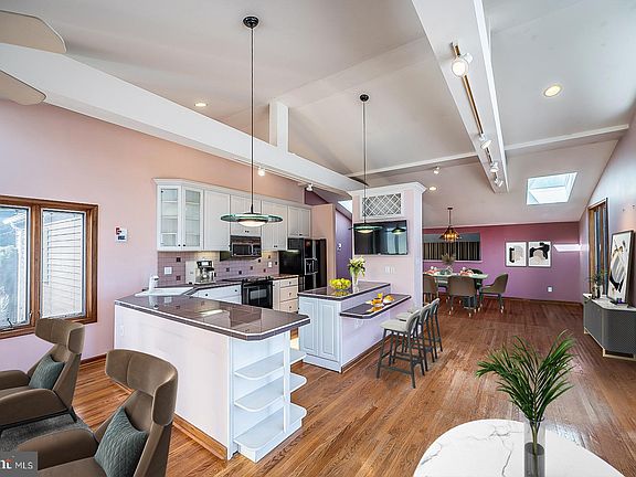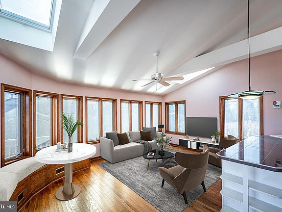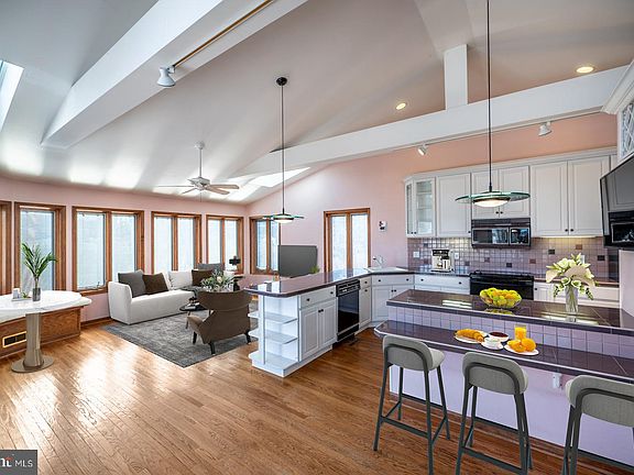 Desirable 3 bedroom / 1 ½ bath single home with finished lower level, garage and inground pool. This home features an open floorplan with hardwood flooring, cathedral ceiling, skylights, exposed beams and recessed lighting in the living room, kitchen and dining room. This home’s kitchen has been updated with 42” cabinetry. Sliding glass door leads to raised backyard deck and pool area. Master bedroom has hardwood flooring and two closets. One is a walk-in closet. Both additional bedrooms have hardwood flooring. The three bedrooms are all serviced by the ceramic tile bathroom in the hall. The finished lower level features a family room with raised hearth brick fireplace, powder room, laundry room , utility room and large unfinished storage area. The park-like backyard is enclosed by a newer split rail fence (2022) and features an inground swimming pool in a private setting. Dual zone heating provide comfort year-round. Both HVAC systems were replaced May 2015. The hot water heater was replaced in Dec 2019