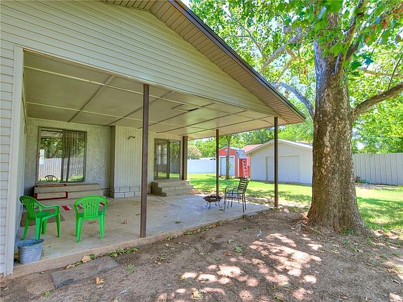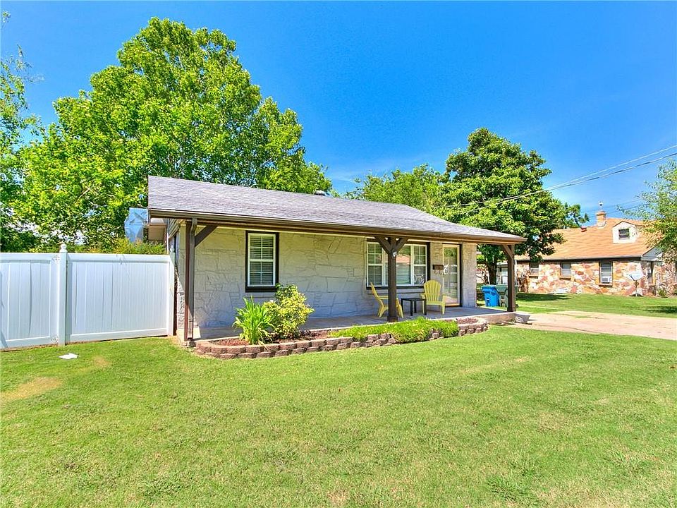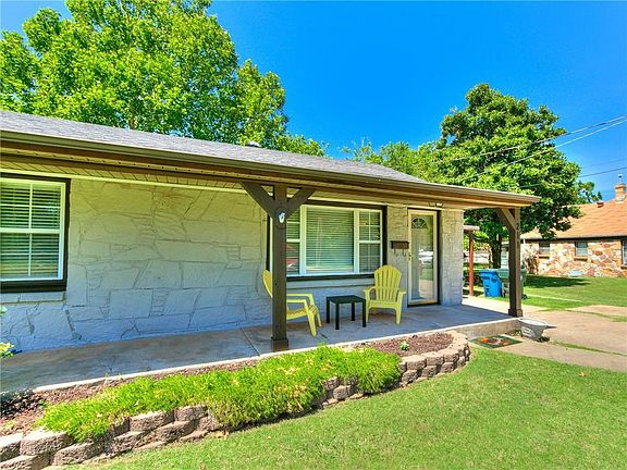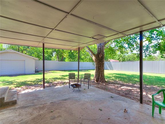 Great home very clean with lovely curb appeal. Sets in the heart of MWC and is only a couple of miles from the main entrance to TAFB. It has great windows all around the house. The front room could be a used as a setting area, formal living room or 2nd living room. This home comes with a large den with a real wood burning fireplace. The kitchen has lots of cabinets all in Red Oak with a double oven which makes it nice when cooking for a large family or company. The bedrooms are set up in a mother in law plan. The 2 full bathrooms have tile shower enclosures. The floors in the bathroom are hardwood, and slate tile. This home has lots of wood work and crown molding in every room. Carpet and flooring recently updated. This house has a large yard fenced with white vinyl and metal fencing double swinging gates you can drive in and a walk through gate this fencing offers a lot of privacy in your own backyard. It has a detached 1 car garage and carport. This is a rare find in Midwest City!!