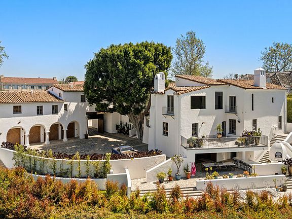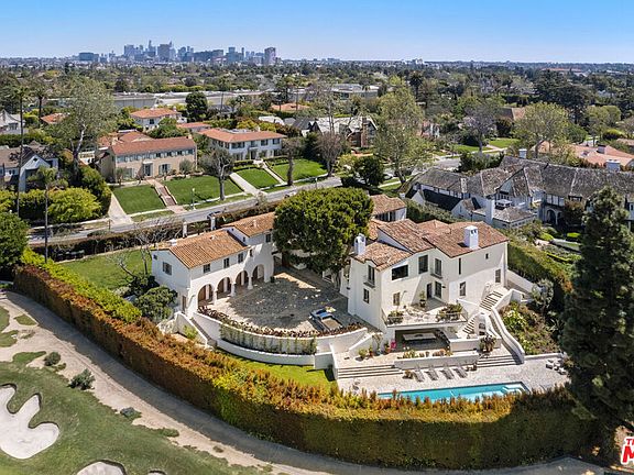 Introducing the Howard Hughes Estate, an iconic Spanish Revival masterpiece nestled along the 8th green of Wilshire Country Club. Situated on the prestigious South Muirfield Road in Hancock Park, this architectural gem is steeped in history and adorned with timeless elegance. Originally envisioned by renowned architect Roland E. Coate for socialite Eva K. Fudger, this estate later became the residence of legendary billionaire, movie mogul, and aviator Howard Hughes. Spanning 10,179 square feet, this residence seamlessly blends classic charm with contemporary luxury living. Every detail of this captivating property has been carefully considered, from luxurious finishes to tasteful accents throughout. As you enter through the gated driveway, you're greeted by a grand motor court leading to a spacious 3-car garage and workshop. The chef's kitchen features polished brass countertops and a magnificent 24-foot island, flowing into a voluminous family room adorned with floor-to-ceiling bookshelves and separate bar. The primary bedroom offers breathtaking views of the iconic Hollywood Sign and the sprawling fairways of Wilshire Country Club, enveloping you in old Hollywood glamour. With seven other beautifully appointed bedrooms, each offering its own unique blend of comfort and style, this estate provides ample space for relaxation and rejuvenation. An enchanting cobblestone courtyard with an outdoor fireplace serves as a tranquil retreat for both intimate relaxation or entertaining a hundred guests. Step outside to the expansive backyard, an entertainer's paradise complete with multiple lounge areas, a catering kitchen complete with a custom-built stone pizza oven, and a sparkling swimming pool with separate spa. Additional highlights include an intimate screening room, a 2,500-bottle wine vault, and a guest residence with a full kitchen and bath. Surrounded by meticulously landscaped grounds offering lush greenery and panoramic views of the Hollywood Hills, this estate holds a coveted place on the National Register of Historic Places and is designated as Los Angeles Historic Cultural Monument #1123. Don't miss this unparalleled opportunity to own a piece of Los Angeles history.