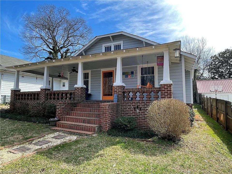 SPACIOUS, CUTE AND CONVENIENT! This 1930's charmer in Lexington Historic District has had many updates and has Airbnb rental history(currently used as Airbnb). Relax on the wrap around composite decking front porch with ceiling fans and access from the primary bedroom, whip up meals in the large kitchen boasting stainless appliances, wood countertops and a unique bottle cap backsplash. The backsplash tiles behind the stove were from High Rock Outfitters on Main Street in Lexington. Both bathrooms have been completely remodeled - one with a tile walk-in shower and the other with a clawfoot tub. A nice large backyard is a blank canvas for your creativity. Can be sold fully furnished. Many updates in 2019 including roof, exterior paint, windows, water heater and heat pump. Laminate flooring and composite front porch decking done in 2021. Property is in Historic District
