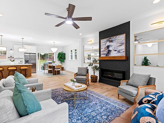 Discover a lifestyle you'll love, just a short scenic drive from Raleigh, in this stunningly designed Hykal Home, nestled in the beautiful Lake Royale community. Picture yourself in expansive living spaces with soaring ceilings, a Pinterest-worthy kitchen, and luxurious finishes throughout. Every detail has been thoughtfully crafted to blend elegance with everyday functionality for the modern family. The first floor boasts gorgeous Luxury Vinyl Plank flooring, a dream kitchen with quartz countertops, soft-close shaker cabinets with crown molding, SS appliances, and an oversized kitchen island with beadboard accents and high end lighting fixtures throughout. Step into your spacious walk-in pantry, and enjoy the convenience of a dedicated laundry room and a powder room sure to impress your guests. 2 car garage. Upstairs, unwind in the primary suite with its high ceilings, custom accent wall, and spa-like bathroom complete with a freestanding tub, an expansive walk-in closet, and an oversized shower. Two additional bedrooms and a massive bonus room with custom workstations make this home perfect for work, play, and relaxation. And, as if that's not enough, step out onto your private back deck and enjoy your own retreat in the spacious backyard. Lake Royale offers a host of amenities, including a pool, tennis courts, playgrounds, a golf course, a brand-new restaurant, and a clubhouse. Embrace the ultimate blend of comfort, style, and adventure at Lake Royale!