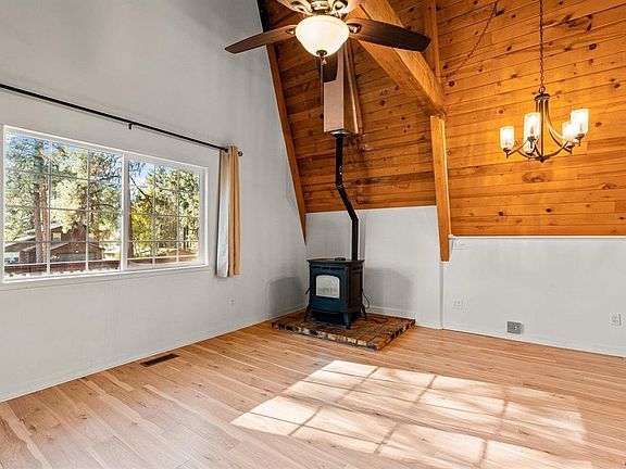 OPPORTUNITY FOR ADDITIONAL INCOME! Tucked away at the base of Forest Lakes, this charming A-frame home sits on a spacious triple lot, enveloped by stunning mature Ponderosa pines. Remodeled in the past few years, the interior features a bright and open floor plan that connects the living and kitchen areas, enhanced by abundant natural light from south-facing windows. A pellet stove adds warmth during the cooler months. The main level includes a comfortable bedroom and a full bath, while the lower level offers another bedroom, bath, and a welcoming living area. Modern updates are showcased in the bathrooms, light fixtures, tile, carpeted stairs, and luxury-like vinyl flooring, all contributing to the home’s inviting atmosphere. Energy-efficient appliances, including a refrigerator, washer, dryer, and electric furnace, complete the package. A standout feature is the detached living space above the spacious two-car garage, accessible by a private staircase and entrance. This charming studio includes a small kitchen, full bath, laundry area, and ample storage, along with an eco-friendly ETS system for sustainability. The charming studio presents a lucrative opportunity for a potential vacation rental generating additional income and adding considerable value to the overall property. The property is enhanced by a fenced yard with lovely fruit trees, a large parking area, and a U-shaped driveway for easy access. Don’t miss this opportunity to make this beautifully updated, move-in ready home yours!