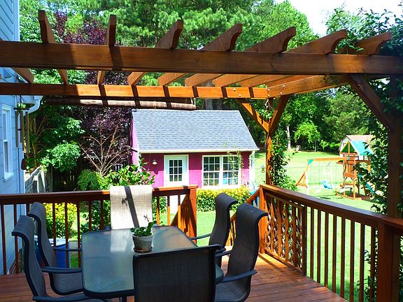 Elegant 3br/2.5ba cape cod home located in Dover Heights. Peaceful and serene setting nestled in Northern Durham, this home is convenient to Durham and Roxboro. Less than 10 miles from Durham Regional Hospital, Duke Hospital, and Duke University. As you pull up to this home, you are greeted by well manicured and mature landscaping. The fenced back yard includes a garden area and a workshop that can hold all of your household tools. From the front door you will enter the living room which features a 2 story ceiling, skylights, wood flooring, and a wood-burning fireplace. The updated and upgraded kitchen is sure to make you smile, with granite countertops, lots of cabinet space, tile backsplash, stainless steel appliances, and tile flooring. The dining area has a double glass door that allows plenty of natural sunlight to brighten the room. The glass door leads out to the deck with a pergola gazebo and a view that you must see to believe. The master bedroom is on the first floor and has its own private bath with garden tub, separate shower, skylight, and dual vanity. The second floor has 2 more bedrooms, and a loft that is perfect for office space. Pets are accepted, upon approval and fees. Schools: Eno Valley Elementary, Carrington Middle, Northern High Contact us to schedule a showing.