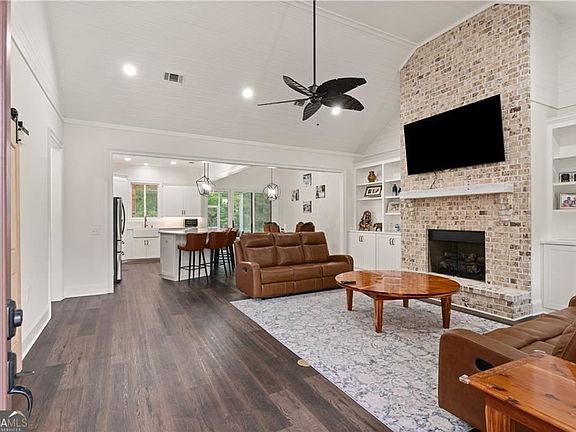Beautiful brick home situated on nearly 3 acres in the gated neighborhood Maiden Creek Landing. This home features 3 bedrooms, 2 full baths, 1 half bath, office, family/living room, kitchen, laundry room, bonus room, screened porch and an attached 2 car garage. The home has LVP flooring throughout main living areas with carpet in the bonus room, stainless steel appliances, quartz countertops, custom built-ins, and a fireplace in the family room. The homes primary bedroom features an en suite bathroom with double vanities, soaking tub, tiled shower and walk in closet. Outside you will find a large screened in porch with a full outdoor kitchen and brick fire pit. The porch overlooks a spacious backyard, with room to add a private pool! When not enjoying outdoor living at home, the neighborhood offers a spacious clubhouse, exercise room, pool, dock and boat hoist on deep water! With all the amenities Maiden Creek Landing offers and a public golf course roughly one mile away this home embodies coastal living at its finest!