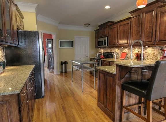 Stunning, wonderfully maintained all-brick home with oversized deck and large backyard. Totally rennovated kitchen with stainless steel appliances and granite; Bathrooms are remodeled with beautiful vanities. Hardwood flooring through-out the home.