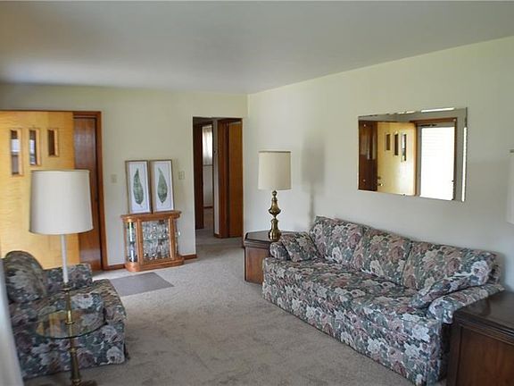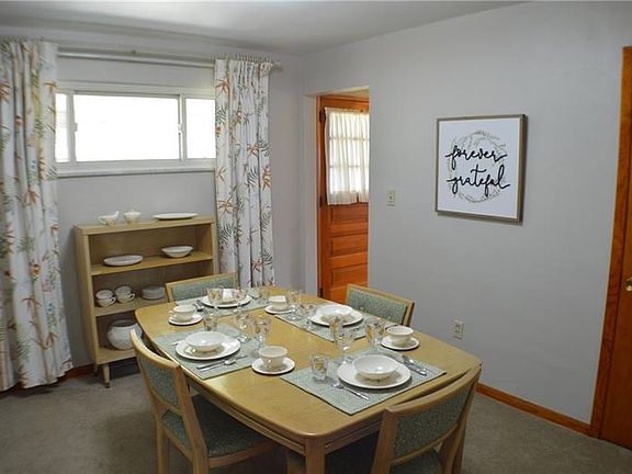 This adorable brick ranch is spotlessly clean! Plaster walls are all painted with light, neutral shades of cream and white. Living room has large coat closet at entrance. Maple trim. Brand new carpeting. Bright kitchen includes white appliances and steps out on to a lovely screened porch, perfect for these hot summer evenings! Dining room could easily become 3rd bedroom if needed. Both bedrooms have nice sized closets. Full bath between has walk-in shower. Basement is currently used as laundry and storage, but really could be a great family room space with little effort, glass block windows. Additional bathroom with block shower. Exterior door to walk up to level back yard. 2 car detached garage with separate auto doors. 2017 Roof, Furnace/Air, Breaker box!