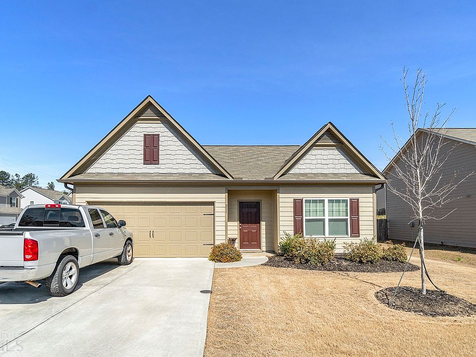 Come see this lovely cottage ranch home on a corner lot. The open-concept and updated kitchen have black appliances, custom cabinets, granite counters, and a spacious walk-in pantry. The luxury plank flooring creates a modern and stylish feel throughout the home. The well-maintained three-year-old construction has perfect carpets and neutral paint in all three bedrooms. All the windows have wooden blinds for privacy and insulation while also enhancing the home's aesthetic appeal. The sizable master bedroom has a large walk-in closet, and master bath, complete with a separate shower and soaking tub. Upgraded toilets are included in both bathrooms. The community amenities include a playground, tennis courts, clubhouse, pool, and walking trails. This is perfect for a community-oriented lifestyle. Don't forget the sought-after school system.