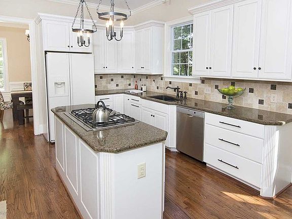 - Kitchen: Counter Tops-Granite, Island, Floors-Hardwood, Backsplash-Tiled, Cabinets-Painted