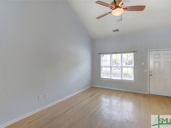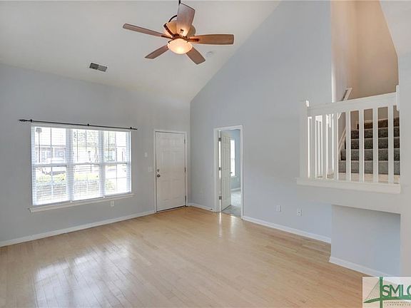 Welcome home to this 3 bedroom, 2 bath end unit townhome in the Harmony Townes neighborhood of Pooler! Features an open living room with vaulted ceilings, fully equipped kitchen with breakfast bar and dining area, master bedroom on main level, plus two spacious bedrooms on second floor. Privacy fenced back yard with patio. Enjoy access to the community pool, playground, and lake! Conveniently located near I-16 and I-95, with easy access to downtown Savannah.