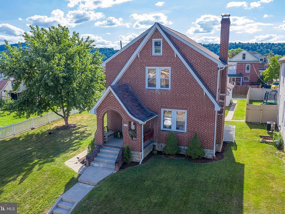 2 BEDROOM CHARMING TUDOR WITH LARGE TRIPLE CITY LOT. Welcome to 211 South Street. This home is the epitome of charm. Built in 1941, this home has beautiful pocket doors, original hardware, a brick wood-burning fireplace and hardwood floors through-out. The main floor features a large living room, dining area, kitchen with stainless steel appliances and plenty of counter space, a full bathroom and a laundry room. Upstairs, there are two spacious bedrooms and recently renovated full bathroom, plenty of closet space and stairs leading to more storage space in the attic. Outside, the home has a large, level yard with an oversized one-car detached garage and several off-street parking spaces. Replacement windows throughout. Hot water tank replaced a year ago as well as recent electric updates and painting!