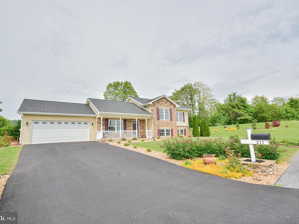 Prepare to be amazed! This lot is landscaped with flowerbeds of Iris, Peony, Tiger Lilly, Daffodils, Easter Lillys, Mums, and hydrangea. The terraced lot has lush rose bushes, raised vegetable beds, and cedar trees. There are patios and paver walkways and a beautiful stone clad retaining wall with Tiki torches for entertaining or just a peaceful evening next to the firepit. The charming rear deck has planter seating and a glorious grapevine carefully weaved into the railing. Upon entering the home, you'll find a comfortable living area with cathedral ceilings and open floorplan for living, dining, and cooking. The next level up has three bedrooms and 2 full bathrooms. The next level down has a large, unfinished room perfect for your Man-Cave project. The garage has a pull down staircase and ample storage. There will be no more houses built next to this home. Overlooking Dutchess Estates in the back of the lot, you are surrounded by pastoral and mountain views. Truly a one-of-a-kind place to make your new home.