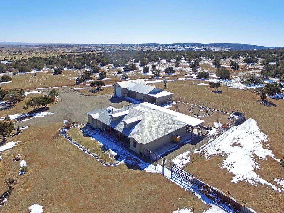 Setting - views - privacy. Horses if you want 'em. RVs, boats, toys if you've got 'em. This beautiful and immaculately maintained single-level family home is a prime offering with all the goodies. Light-filled and open with wood-look porcelain flooring throughout. Wood stove, Anderson windows, fresh stucco, deluxe master bath with designer freestanding tub and custom walk-in closet with massive safe. Finished, over-sized garage with mechanical closets. A spacious covered back porch overlooking a beautiful, low-maintenance landscaped backyard. Fully fenced property with power-ready double gates. What's more? A 28'x36' detached garage with adjacent 18'x40' RV garage plus 425 sqft carport. RV pad with hook-ups. Add'l. 5 Acre lot available separately.