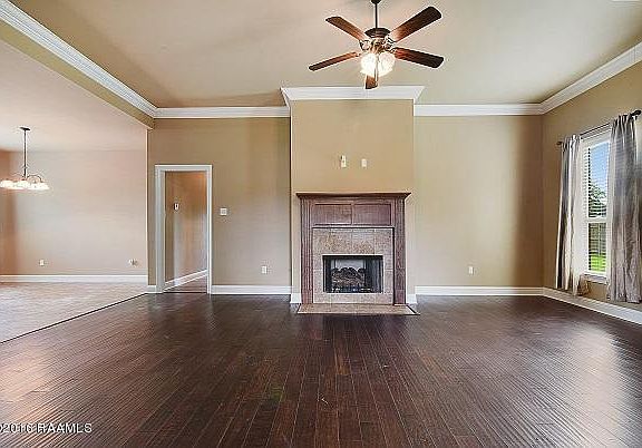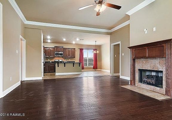living area features an open floor plan and one of the biggest yards in the subdivision! Upon entering the home you walk into the large living room with crown molding throughout and a fireplace with mantle that blends in naturally with the flooring. The kitchen has gorgeous wood cabinets, granite counter tops, and stainless steel appliances! The split floor plan is ideal with the hall bathroom containing separate granite counter top vanities on each side accessible to each separate bedroom! The hallway features a nook made to be a computer area that features a built in granite counter top computer desk! The master bedroom has double vanity granite counter tops with matching mirrors and a large walk in closet! This home is under priced for this subdivision and has been priced to sale!!