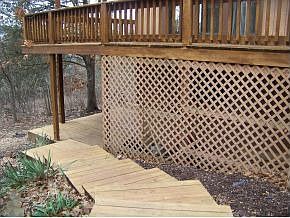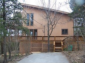 Open bright floor plan with large windows,and high celings in the living room. Wrap around deck on main level. Deck off upstairs bedroom/office. Has nice views of Branson lights, and mountains. Property needs some basic maintenance such as painting, carpet, etc. Room to add a garage or carport Nice tree shaded 1 acre lot Being sold as is.